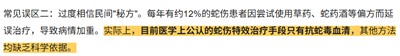 笔者并不否认抗蛇毒血清在治疗蛇毒方面的功效,笔者感到愤慨的是主流医学界对中医治疗蛇毒的排斥和诋毁。相比抗蛇毒血清,中药复方的蛇药往往有广谱抗蛇毒的功效,可以不局限于特定的毒蛇咬伤,而且价格低廉、存储方便,一般的医院完全可以配备。医院在抢救毒蛇咬伤患者时,完全可以一边用中医药的手段紧急施救,一边辨别毒蛇种类、调配抗蛇毒血清,这样就能极大减少患者治疗的延误。