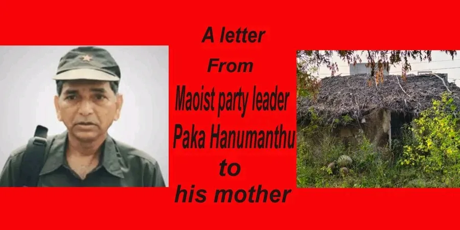 致母亲……致像您这样的母亲们……帕卡·哈努曼(这是毛主义中央领导人帕卡·哈努曼的故事——他于12月25日在奥里萨邦坎塔马勒森林地区被警方杀害。据消息称,他在死前得知父亲已于2022年9月离世的消息;而母亲也在贫病交加、孤苦无依的困境中离世。不知这封信能否在她生前抵达