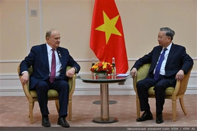 俄共中央主席根·安·久加诺夫在莫斯科会见越共中央总书记苏林 5月11日,俄共中央主席久加诺夫在莫斯科会见到访俄罗斯参加纪念伟大的卫国战争胜利80周年系列仪式活动的越南共产党中央委员会总书记苏林同志。 在双方的此次会见中,久加诺夫再次确认了2024年1月在莫斯科签署的《关于扩大和深化两党关系的协议》是重要里程碑,为深化两党和两国人民之间的传统友谊