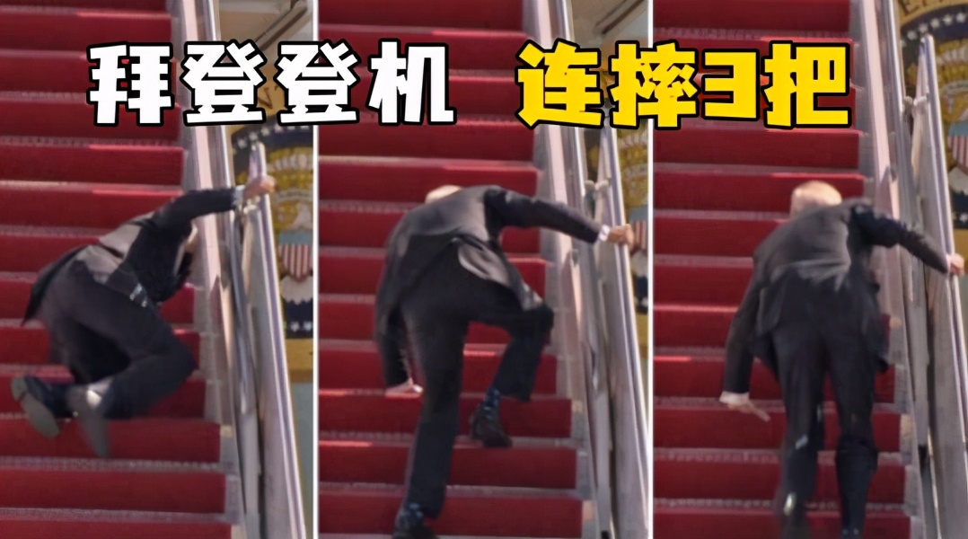 拜登登机摔三跤,那是“上帝”的警告 当地时间3月19日,美国总统拜登在美国马里兰州安德鲁斯空军基地登上总统专机时,连摔三跤,成为热点话题。 后来白宫官方回应说,拜登“百分百健康”,摔跤是因为当时风太大。 果真如此吗? 也许拜登身体状况没有大问题,但是,连摔三跤绝对是他的原因。 因为,登机是上楼梯,拜登是78岁的老人。视频显示,他不是如正
