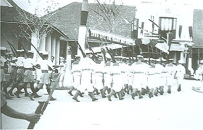 ▲1941年9月24日,第三任拉者在古晋的法庭大厦广场前,举行盛大的布洛克王朝百周年庆典,英国海军还参与了阅兵仪式,只是三个月后,当日军进攻古晋时,却不见这些皇家大兵负隅顽抗。 ▲▲1920年的美里市区街景。 2006年6月25日刊登 日本偷袭珍珠港不久,便一举攻占了美里,非但强为布洛克王朝的百年统治画下句话,也赤裸裸的暴露了平时耀武扬威之欧籍文武官员,在处变时竟比老百姓还惊